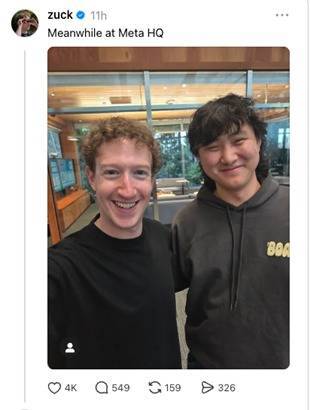 然而,传闻中“官宣”的日子还没来,扎克伯格已经用一张两人都喜笑颜开,亚历山大王似乎还胖了不少的亲密合影进行了辟谣。随后,Meta发言人安迪・斯通(Andy Stone)也在X进行了更正式的澄清,否认了“汪滔离职”的传闻。